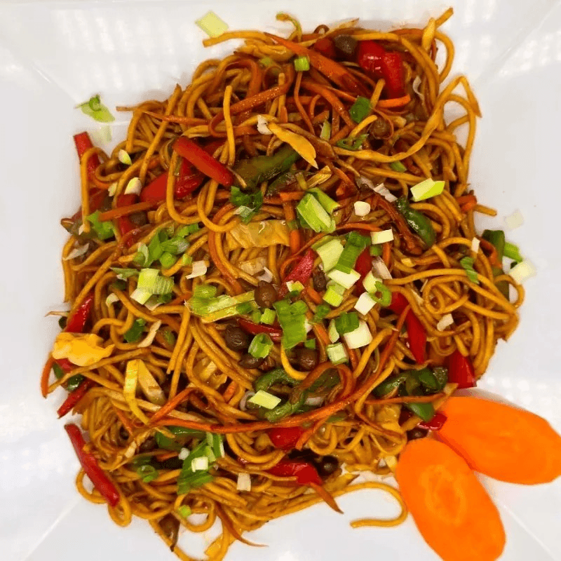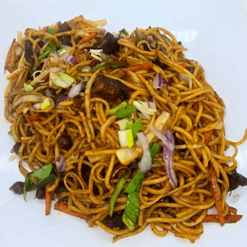 Nepali style noodles stir fried with veggies & choice of meat