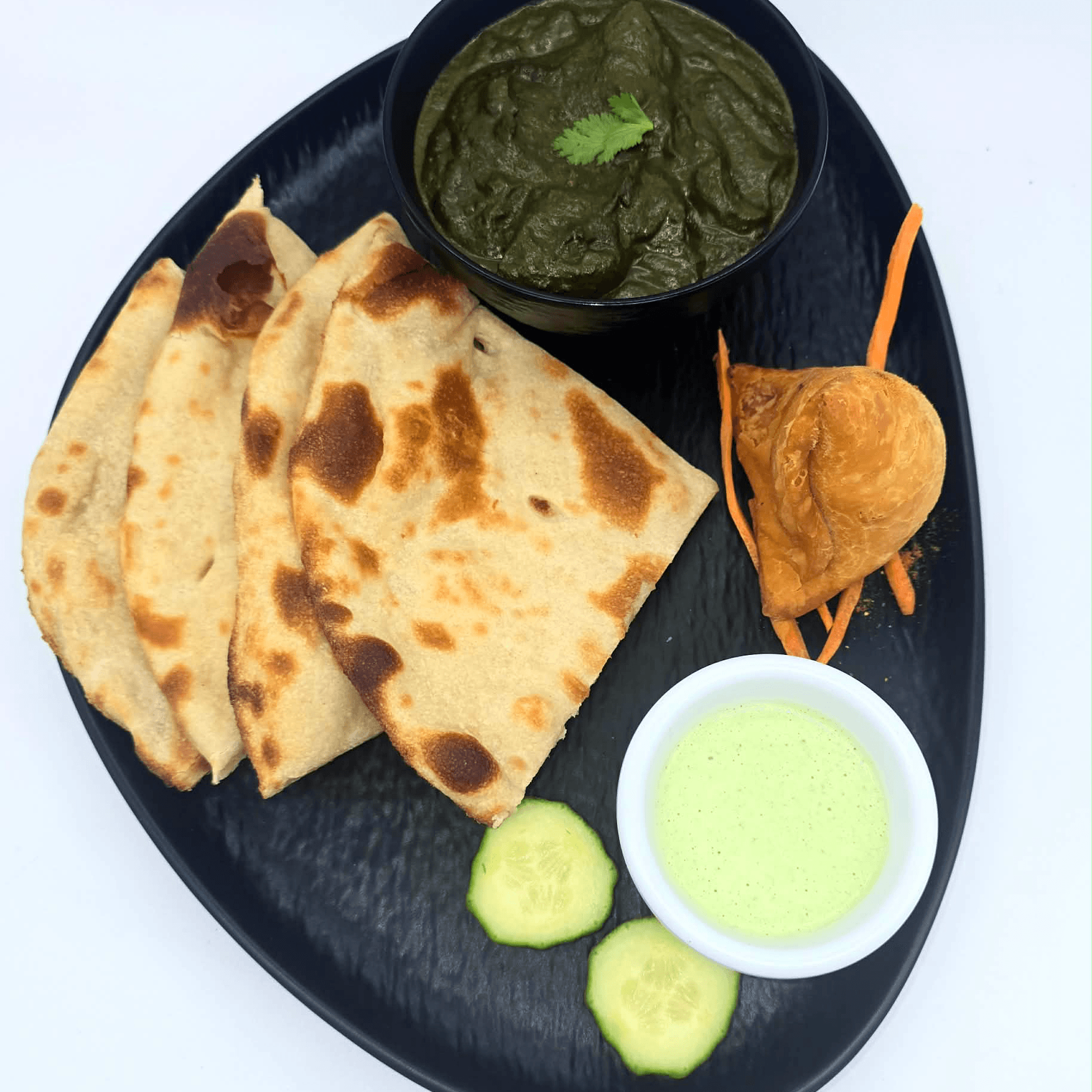 A type of whole wheat flatbread, baked in a tandoor clay oven with extremely high heat, giving it a unique smoky flavor, puffed texture, and charred spots.