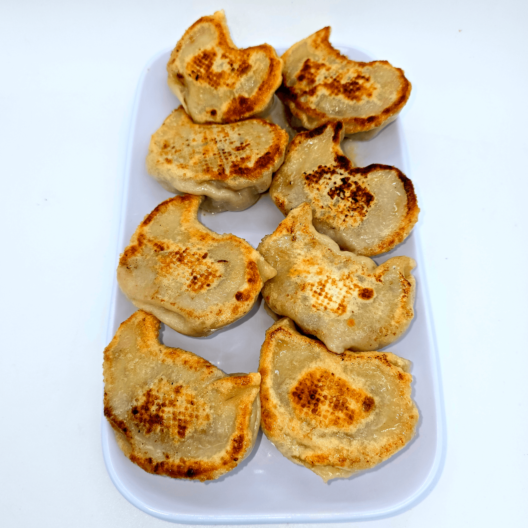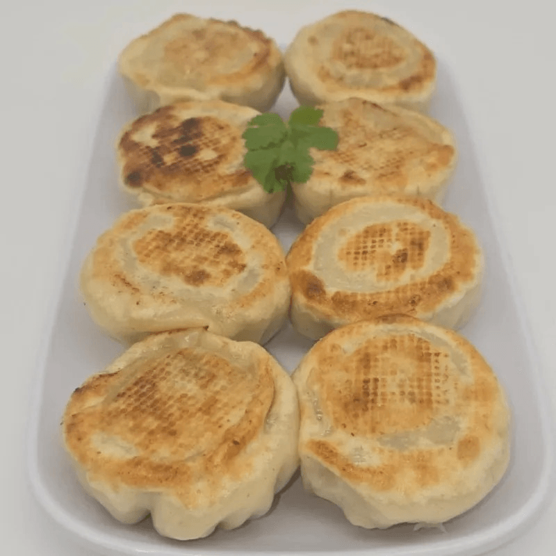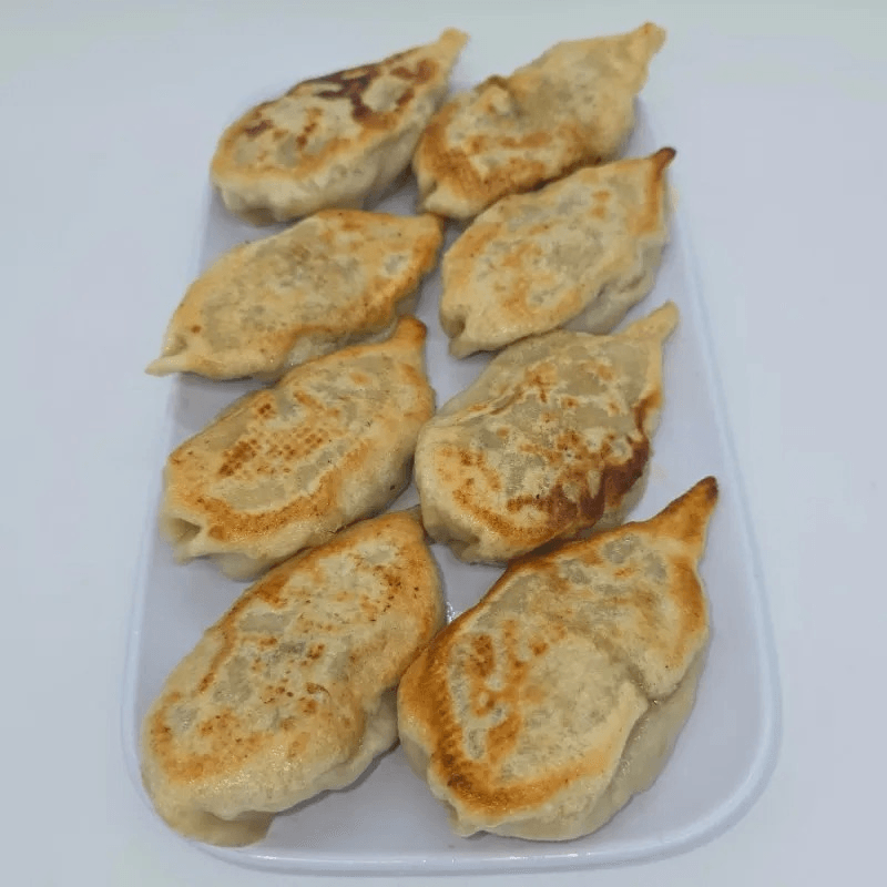 Pan-fried dumplings filled with minced chicken, onion, coriander, spring onion, and soy sauce, wrapped in a delicate pastry