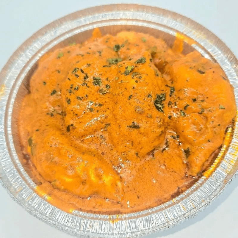 Tender chicken cooked in a creamy tomato sauce with aromatic spices. Comes with a steamed basmati rice