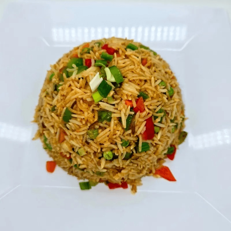 Basmati rice typically includes mixed vegetables, aromatic Indian spices, and herbs. Comes with a steamed basmati rice