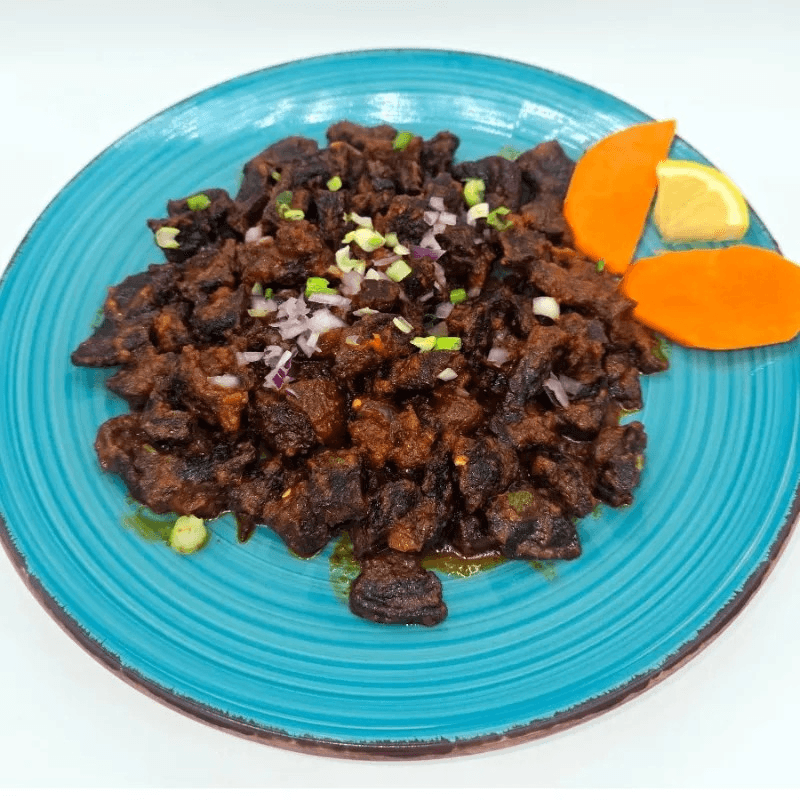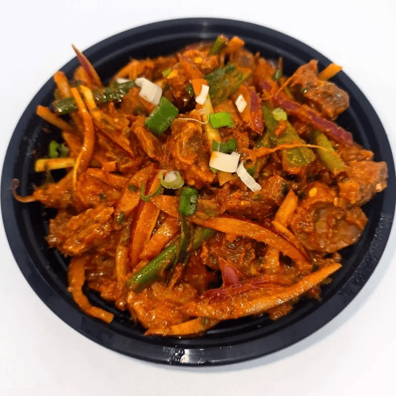 Dried beef sautéed with onions, green chilies, tomatoes, and seasoned with Himalayan spices