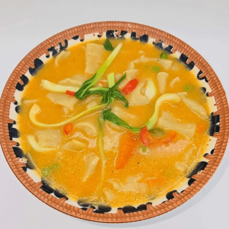 Boiled noodle soup with chicken, mixed vegetables, and Himalayan spices