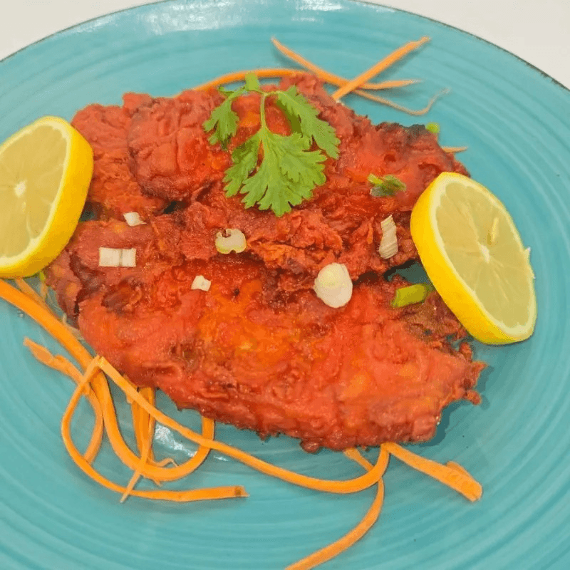 Grilled chicken marinated with Himalayan spices, onions, garlic, ginger, and green chili, offering a traditional Nepali flavor
