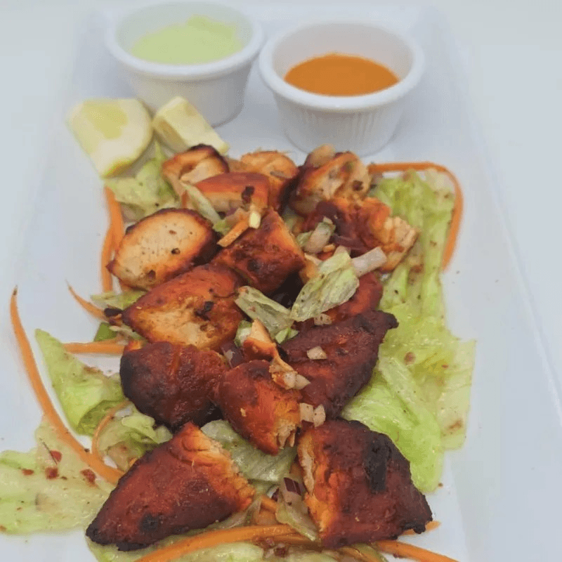 Grilled boneless chicken marinated with Himalayan spices, onions, garlic, ginger, green chili, and cilantro