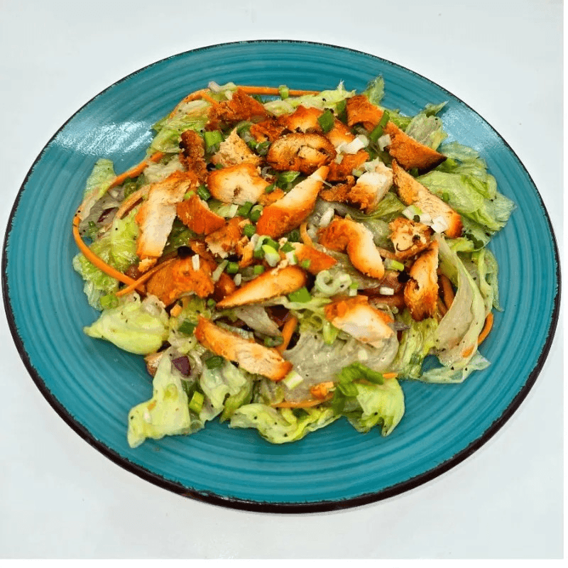 Freshly tossed greens with seasoned chicken, and crisp veggies