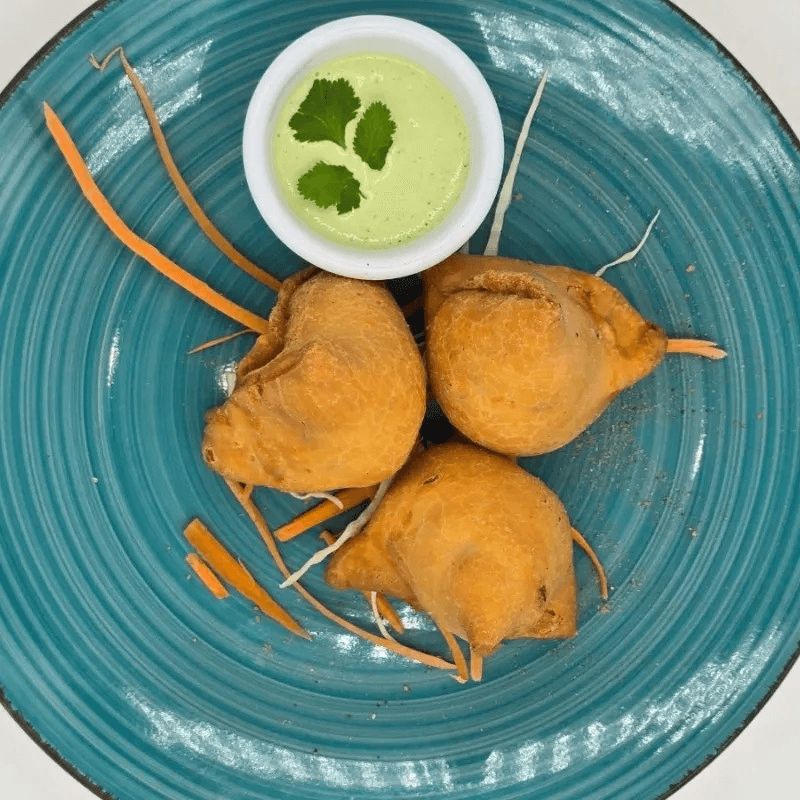 Golden-fried dumplings filled with seasoned ground beef, onions, garlic, ginger, cilantro, and traditional Nepalese spices